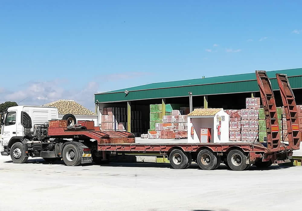En nuestra flota de camiones podemos encontrar camiones grua de varios tamaños, camiones doble carro , Dumpers profesionales, Pulpos, cestas para manipuladores, dando un servicio completo ofrecemos a nuestros clientes un amplio catálogo de productos de primeras calidades en primeras marcas nacionales e internacionales, siendo DISTRIBUIDORES OFICIALES DE PROCERAN, SDAD FINANCIERA Y MINERA (GOLIAT), GRUPO PUMA, GEOTILES, ROCA SANITARIOS, CERAMICAS MIRAMAR, TEJAS COBERT, LA ESCANDELLA, otros muchos más.